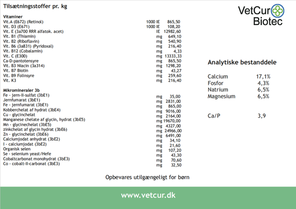 Bij VetCur raden ze aan om Beginner kruiden mineralensupplementen te gebruiken vanaf de leeftijd van ongeveer 8 weken totdat het paard volgroeid is - afhankelijk van het ras is dit tussen de 3-6 jaar. Dit optimaliseert de kans van het paard om een gezond, gezond en duurzaam rijpaard te worden.